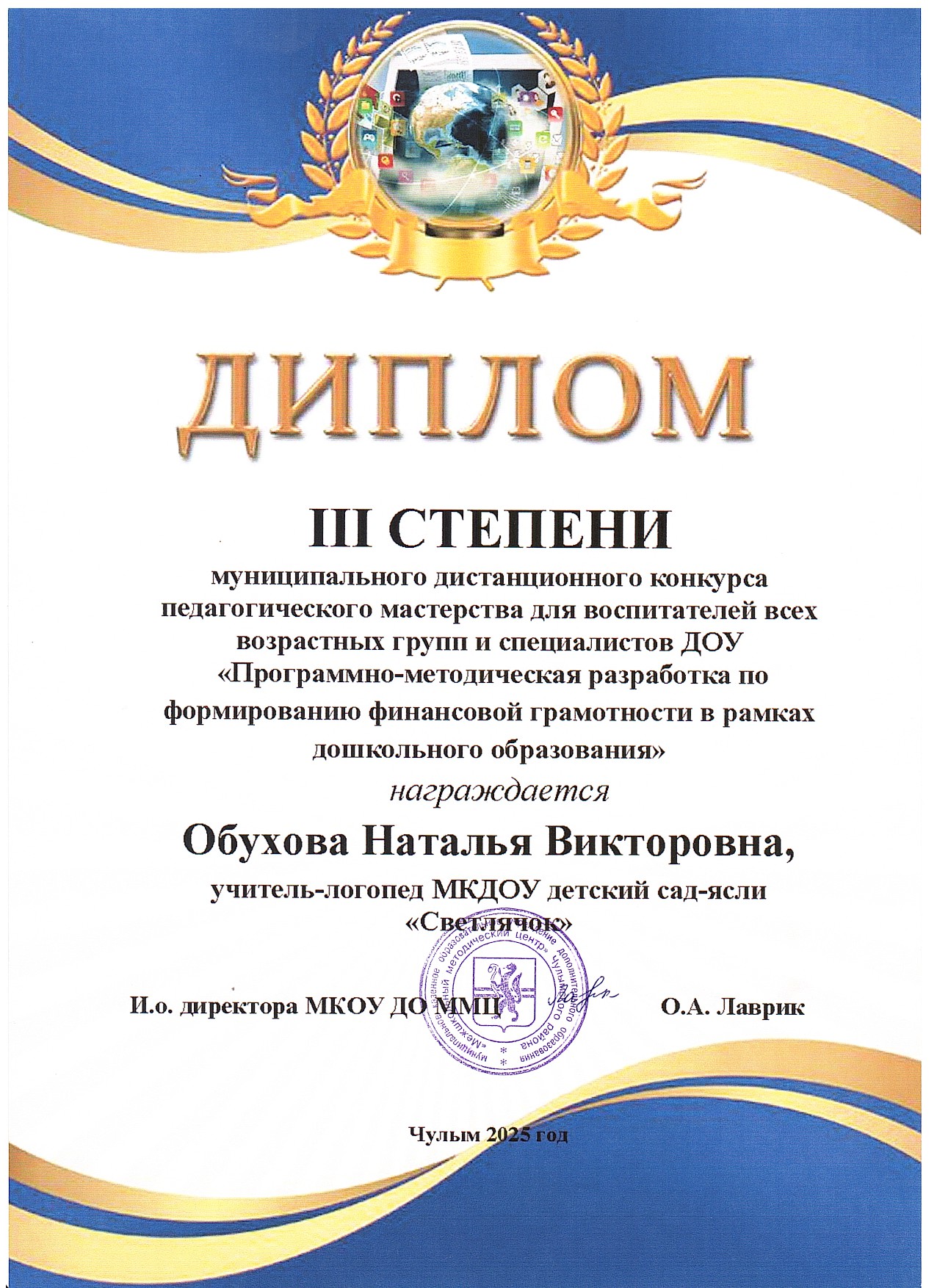Диплом 3 степени