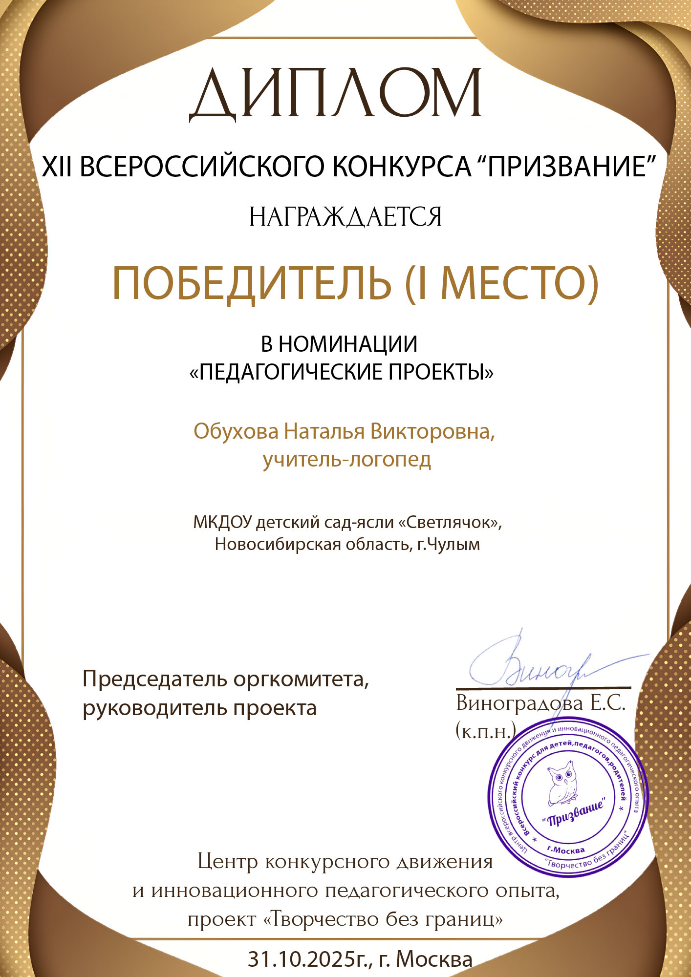 диплом 1 степени